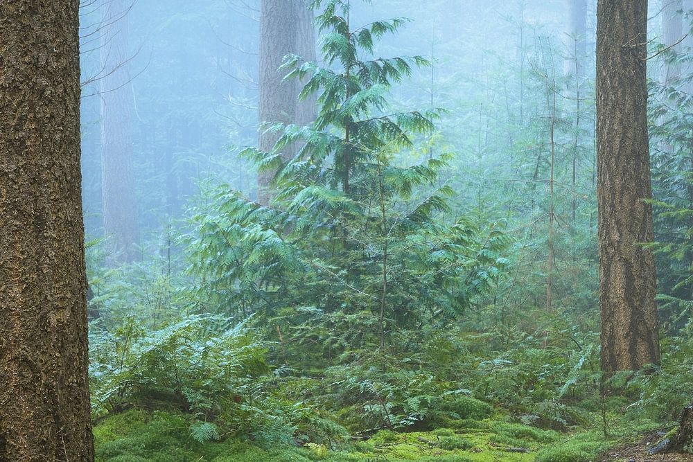 A fresh green spruce among the tall pines. The mist creates a mystical atmosphere in the forest. Do you want a piece of the Veluwe in your home? Then this photo might be something for your wall.