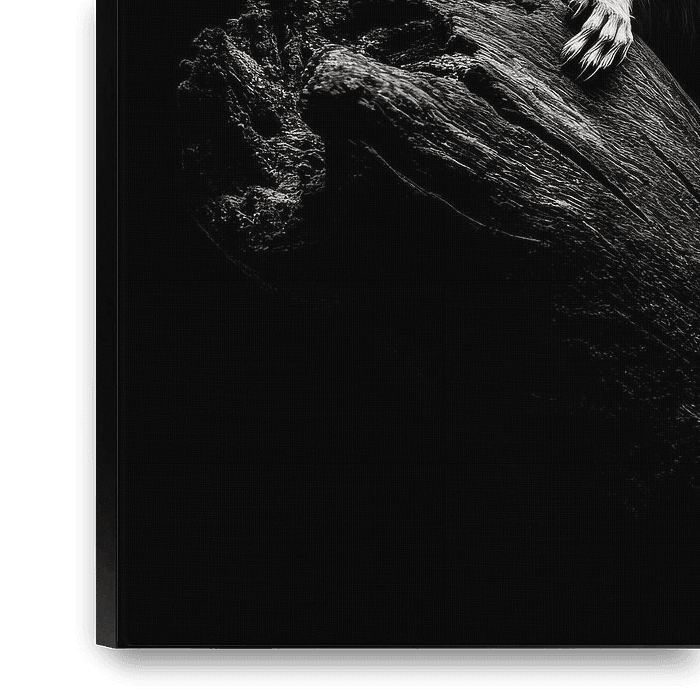 An energetic squirrel perched on a weathered piece of wood radiates a fascinating change of scenery. The monochrome image emphasises the vibrant stripes and fine details of the fur. Ideal for the living room, it brings a touch of nature and vibrancy that will amaze any visitor.