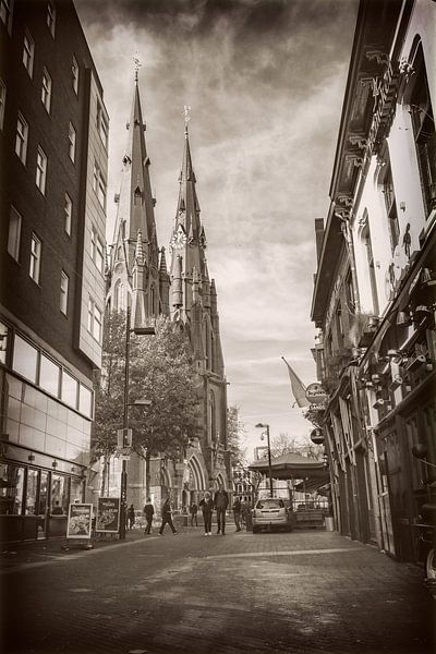 St. Catherine's Church in Eindhoven on the Catharina Square and at the foot of Stratumseind. Another work in my shop only shows the two towers above Stratumseind. Here you can see some more of this neo-Gothic church from 1867.