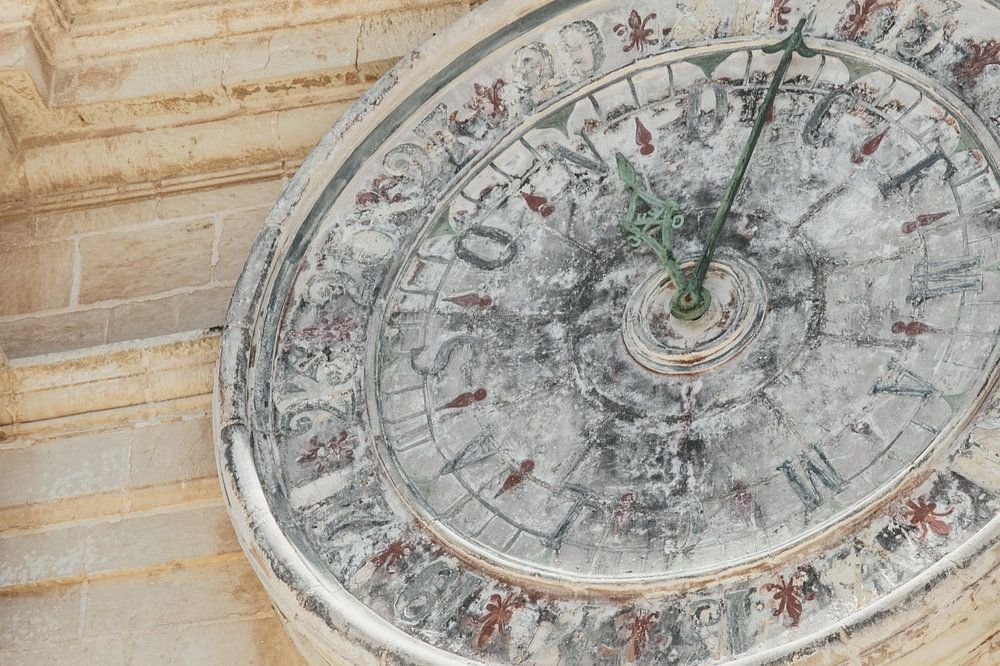 One of the clocks on St Paul's Cathedral in Mdina, Malta.