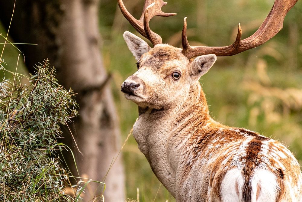 A powerful portrait of a deer looking back at the camera for a moment, its combination of alertness and calmness grabbing the attention immediately.