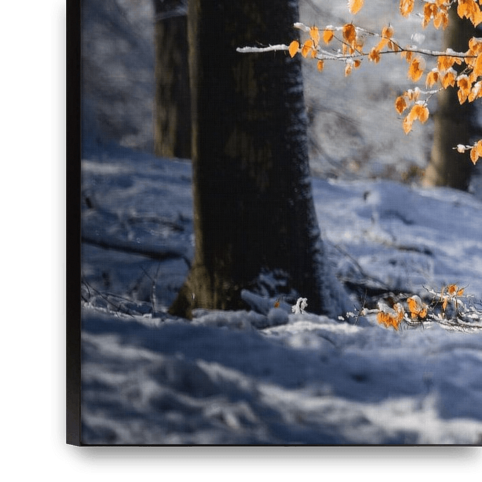 A small beech tree in the making in a lovely snowy forest in Hoge Veluwe National Park