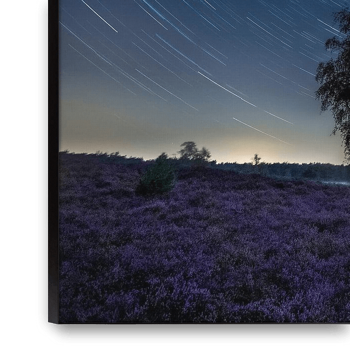 Buy this landscape artwork Star tracks above the Purple Heath by Ruud Engels on canvas, ArtFrame, poster and wallpaper, printed on demand in high quality.