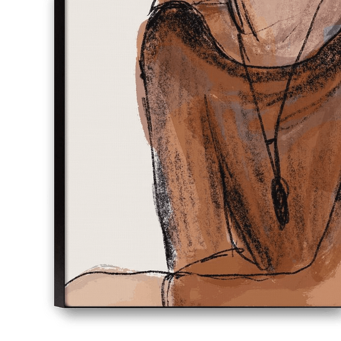 Warm chalk-style portrait, with soft lines and rich autumnal tones that evoke an intimate, soothing atmosphere and highlight the natural beauty of the moment. That moment when you stare into nothingness for a moment and think of all the words left unsaid.