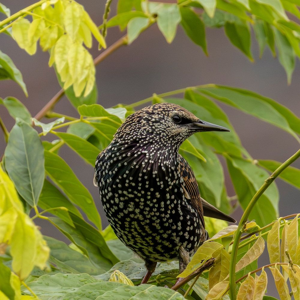 The starling (scientific name: Sturnus vulgaris) is one of the most fascinating and musical birds you can find in your neighbourhood. Although it appears black at first glance, the sun reveals a beautiful palette of iridescent colours such as purple, green and blue, sprinkled with white "pareltjes" in winter.