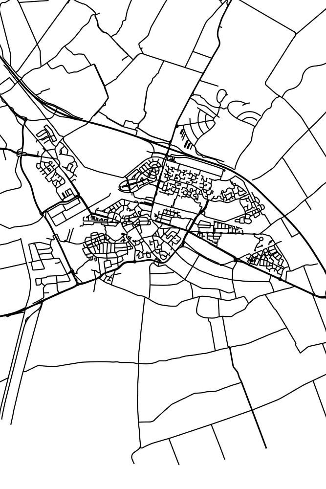 Black and white map, street map or street plan of Steenwijk. Steenwijk is located in the municipality of Steenwijkerland, province of Overijssel. On the city map all public roads in Steenwijk are included. Furthermore, the map is provided with the coordinates of the center of Steenwijk.