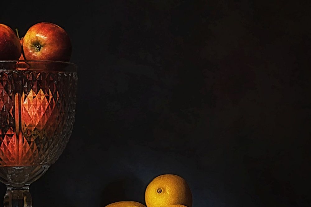 Warm still life with lemons and apples. Brings an artistic atmosphere in your room with a warm glow. also nice as a round photo or wallpaper.