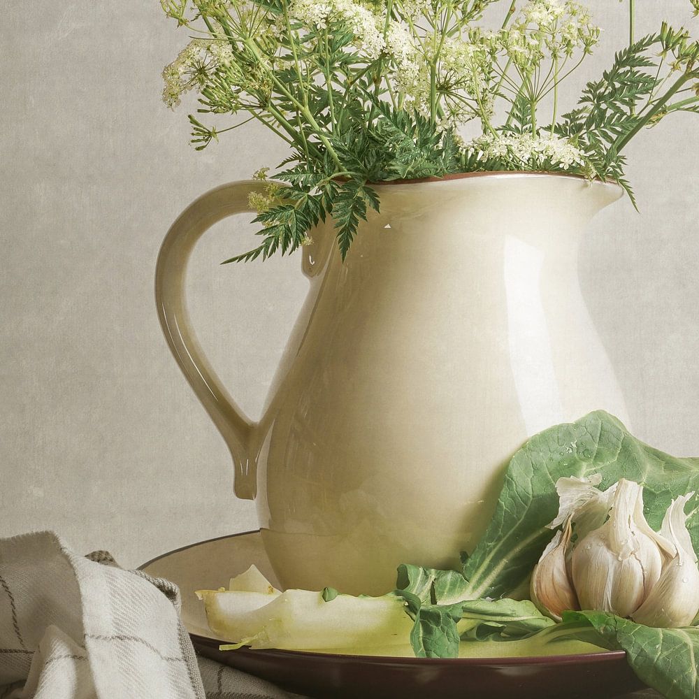 The still life itself has a medieval feel but the fresh grey tones make it modern, contemporary art.
