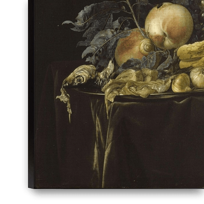 Buy Still life with nautilus shell cup, Willem van Aelst as a reproduction on canvas, ArtFrame, poster and wallpaper, printed on demand in high quality.