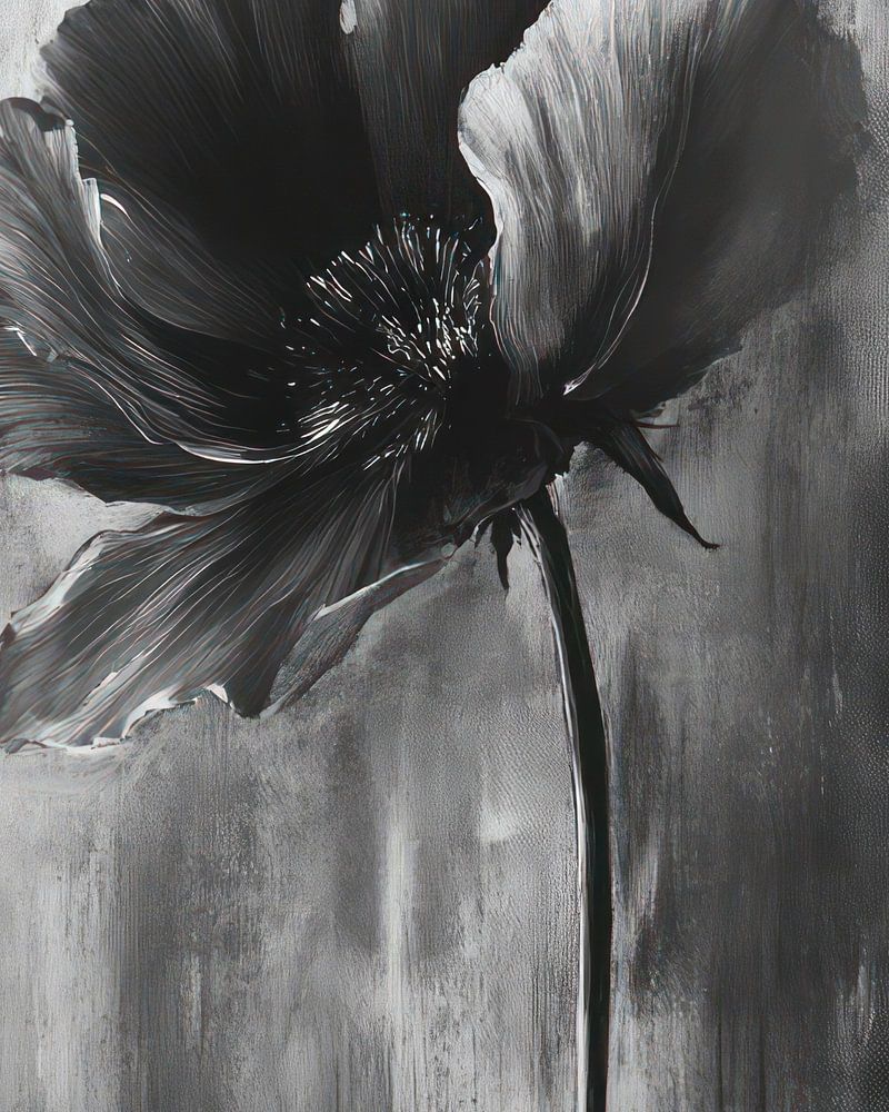 This graceful, monochrome flower floats like a memory on a weathered background full of texture and nuance. The work exudes melancholy and stillness, with subtle brushstrokes highlighting the fragility and elegance of impermanence. The grey scale makes this artwork powerful and timeless - perfect for a minimalist interior or as a poetic accent in a contemplative space.