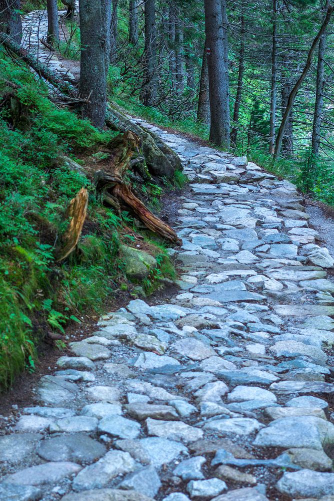Stone path in forest Tatra mountains south Poland city Zakopane