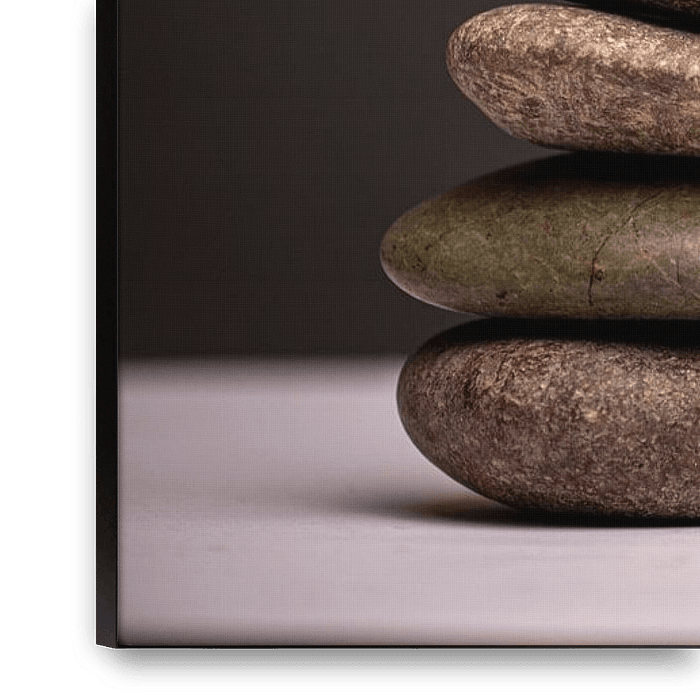 Buy the photo Stone tower on a white table against a dark background by Alexander Baumann on canvas, ArtFrame, poster and wallpaper, printed on demand in high quality.