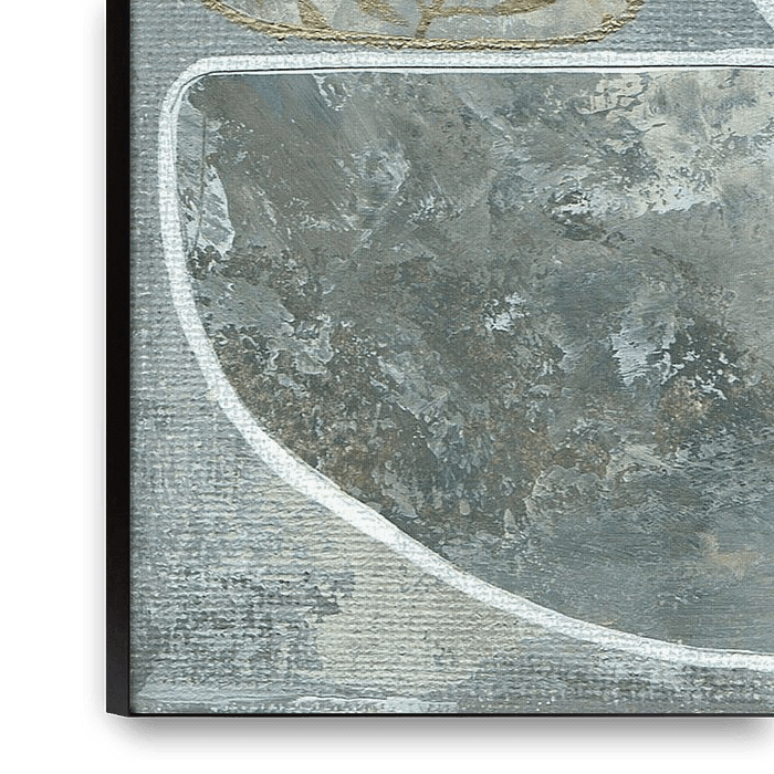 Mixed media technique in Grey tones with hand-drawn Elements in White and Gold.
