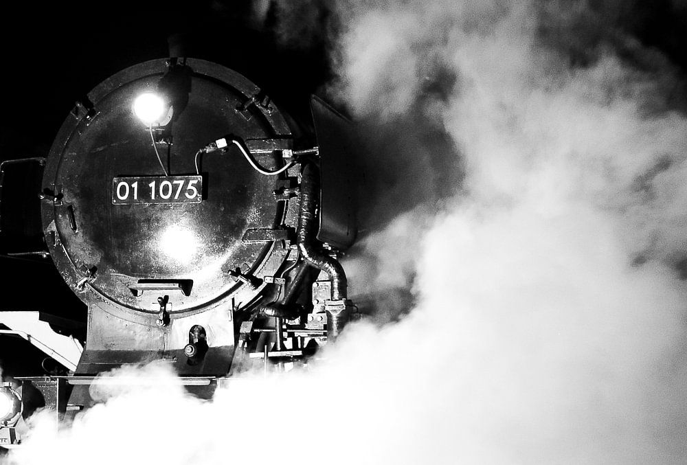 Stoomtrein onder stoom gefotografeerd tijdens de Nachtparade bij Stoom Stichting Nederland.