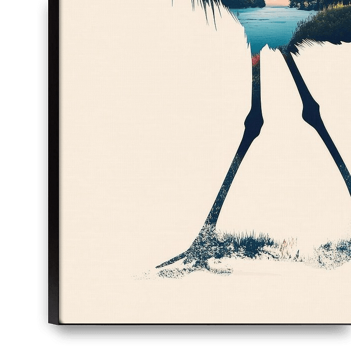 A majestic stork, whose body conceals a breathtaking landscape, comes to life here. The harmonious combination of nature and animal epitomises tranquillity and inspiration. This artistic work brings a fresh, creative touch to the living room and invites you to daydream about faraway places. Ideal for any nature lover!