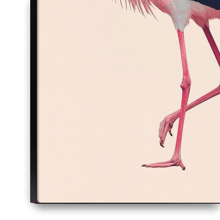 A majestic stork, elegant and graceful, soars with its long legs above the soft colours of the sunset. The interplay of nature and fine aesthetics adds a harmonious touch to any room. In the living room in particular, this work of art creates an inspiring atmosphere that invites you to dream and relax.