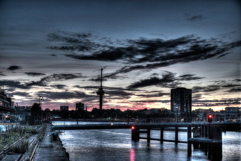 Mooi wolken dek in vurige kleuren boven Rotterdam op een mooie avond geschoten vanaf het deliplein rdam zuid