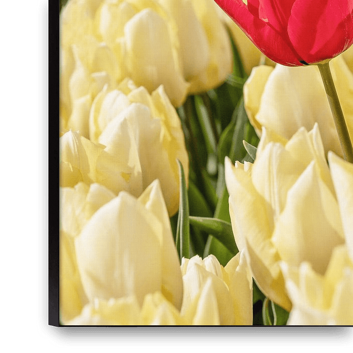 Buy this flower art Stray red tulip by Angelique Niehorster on canvas, ArtFrame, poster and wallpaper, printed on demand in high quality.