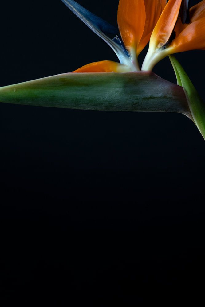 Picture of Strelitzia flower against black background. Modern, simple yet powerful.