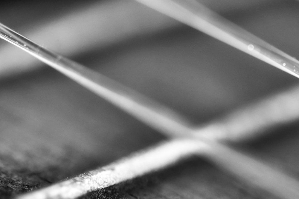A black and white version of the strings on the neck of a Spanish guitar. Widely used in the past, now used as an ornament in the home