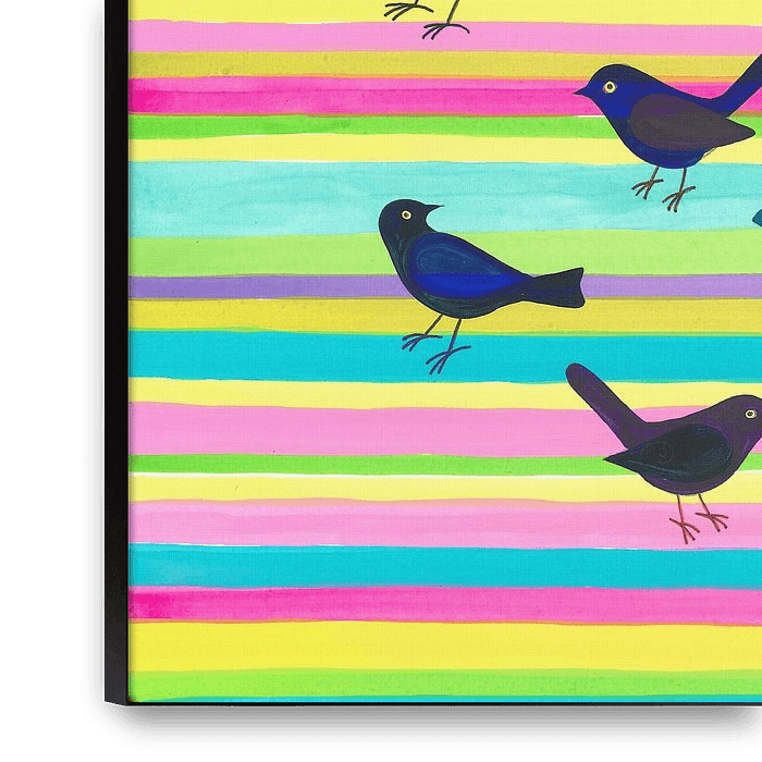 Buy this bird art Striped Bird Parade by Isabelle Brent on canvas, ArtFrame, poster and wallpaper, printed on demand in high quality.