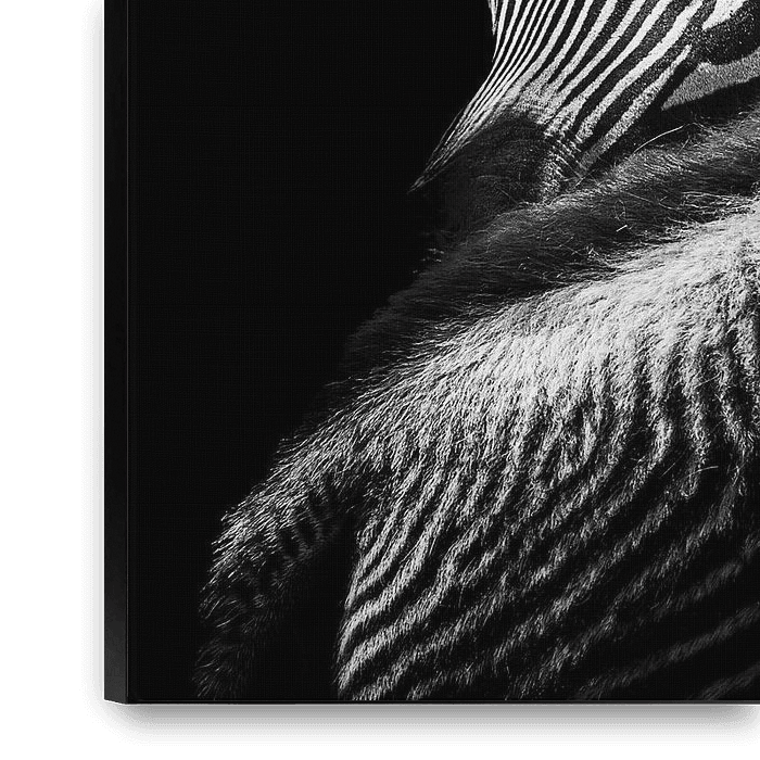 Buy this abstract artwork Stripes upon stripes, this zebra steals the show on its black background by Joost Lagerweij on canvas, ArtFrame, poster and wallpaper, printed on demand in high quality.