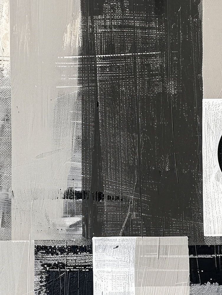 This artwork, called "Stylish Contrast n.3", elegantly plays with the dynamics of black, white and a subtle touch of beige. Abstract shapes and stripes come together in a captivating composition that exudes both sophistication and strength. The deep contrasts between black and white are refined by the addition of a touch of beige, creating a sense of balance and harmony. Each line and shape seems to dance on the canvas, creating a sense of rhythm and movement. This artwork invites contemplation and allows the viewer to experience the subtlety and beauty of contrasts in a stylish and sophisticated composition.