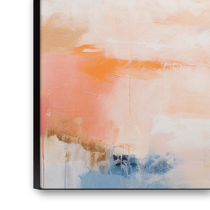 Subtle Abstract Spectrum | Abstract Art - This canvas features an abstract play of soft, harmonious colours that flow together to create a tranquil look. The subtle use of 'Peach Fuzz' adds a warm glow, perfectly balanced with the cool blues and neutral whites that suggest space and light.