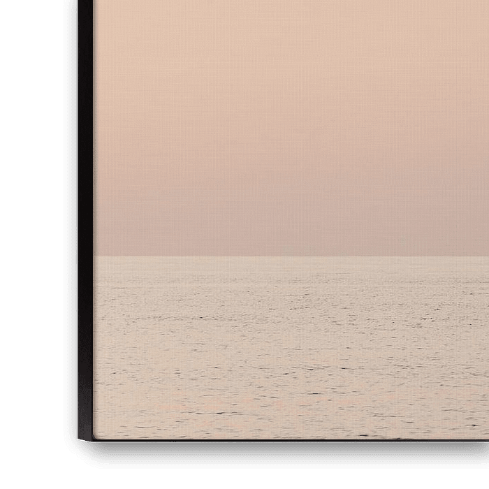 The expansive view is dominated by the calm waters of the Mediterranean Sea, which reflect like a mirror and reflect the warm colours of the setting sun. Above the horizon, the deep blue sky slowly transforms into a subtle palette of pastel colours, with the last rays of the day creating a sense of serenity and wonder.