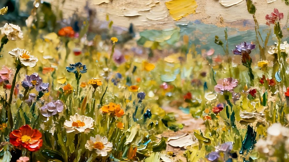 This painting captures the untamed beauty of a wild flower meadow. With bold, impasto brushstrokes, the artist creates dense, almost tangible blossoms in a wide variety of colours, which stand out vividly against the soft background. The reduced depth of field deliberately draws the focus to the diversity and dynamism of the floral…