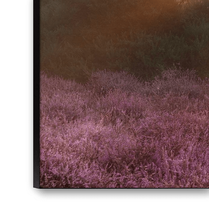 Beautiful sunrays above the purple heather on a lovely summer morning on the Posbank.