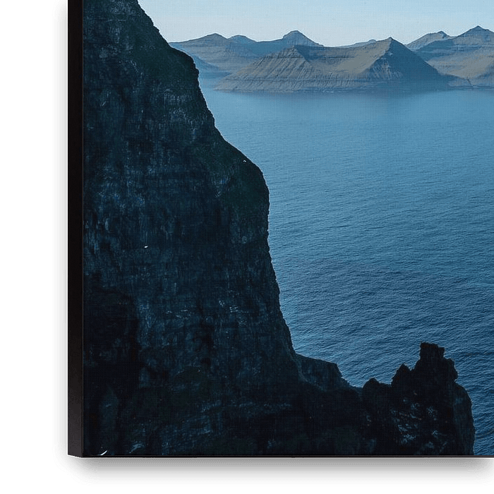 Buy this landscape artwork Sunk in Blue Views: View of Gjov from Kallsoy by Gerry van Roosmalen on canvas, ArtFrame, poster and wallpaper, printed on demand in high quality.