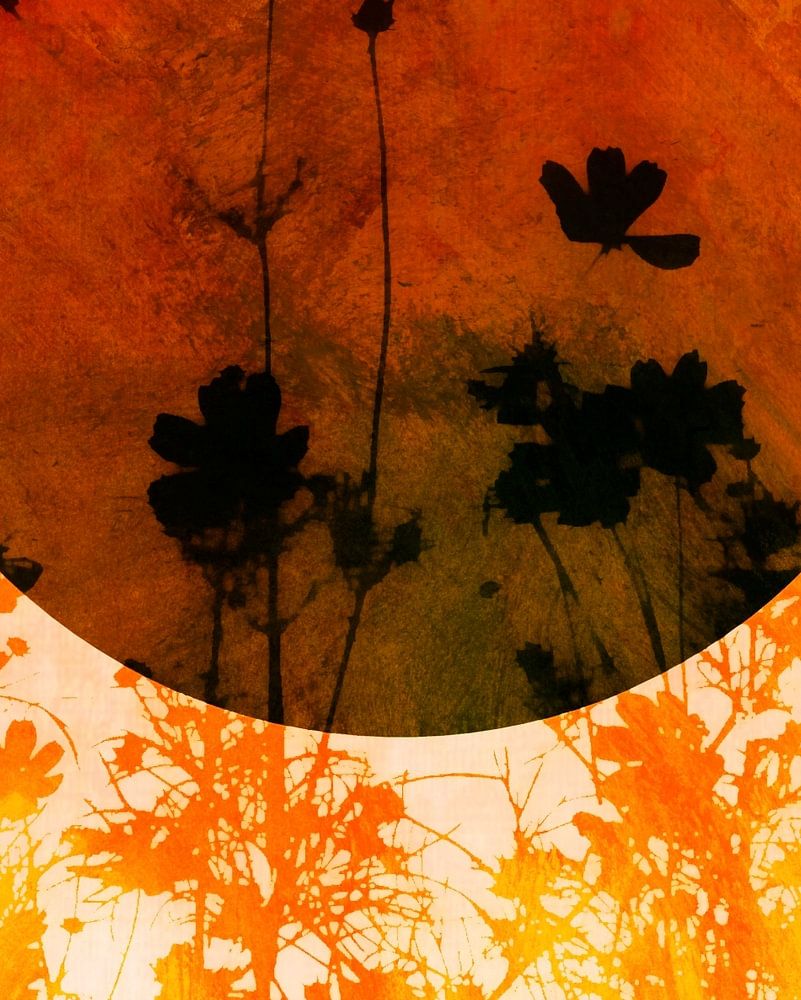 An abstract expressionist painting in sunny, warm and modern colours. A landscape painting that spreads joy.