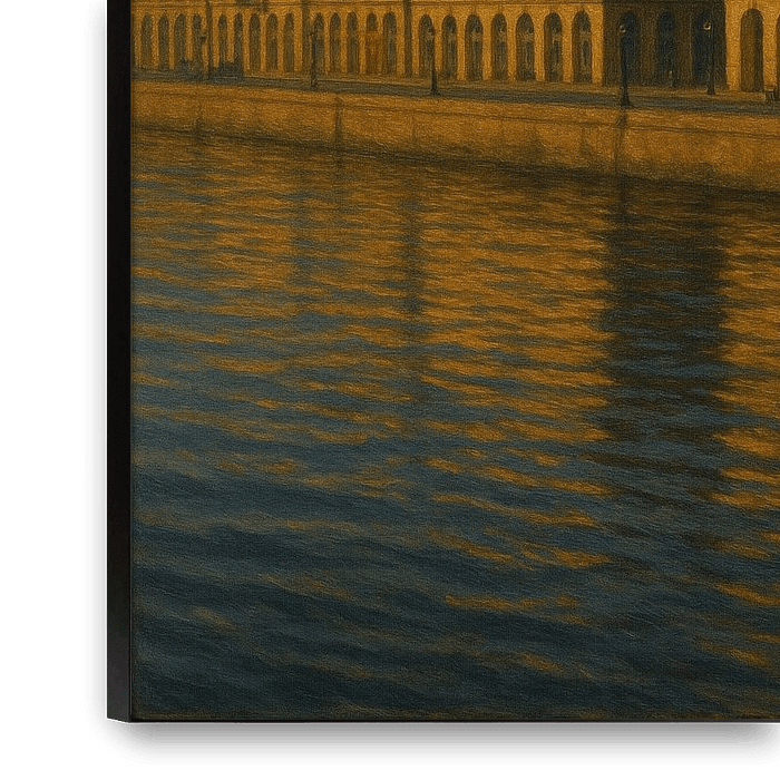 Sunlit Bordeaux Serenity captures the tranquil grandeur of the Garonne’s riverfront, where neoclassical façades stand bathed in afternoon gold. The water below mirrors the city’s warmth in gentle ripples, extending the sunlight into a shimmering expanse of calm. The iconic Place de la Bourse rises at the center, noble and silent, its…
