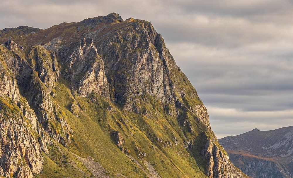 A beautiful sunny evening glow on the rocks on the Lofoten archipelago in Norway