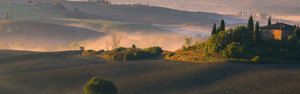 Buy this landscape artwork Sunrise at Podere Belvedere, Tuscany, Italy by Henk Meijer Photography on canvas, ArtFrame, poster and wallpaper, printed on demand in high quality.