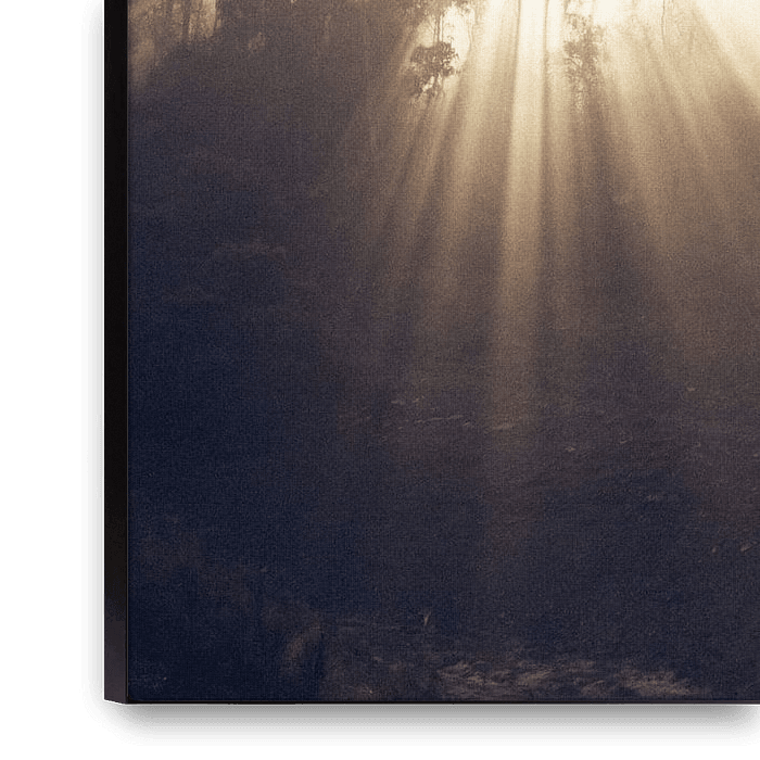 Buy the photo Sunrise behind eucalyptus trees by Shanti Hesse on canvas, ArtFrame, poster and wallpaper, printed on demand in high quality.