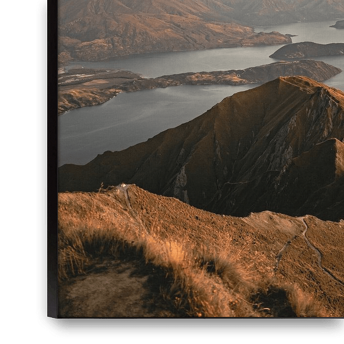 Buy this landscape artwork Sunrise from the top of Roys Peak at Lake Wanaka, New Zealand by Maaike van Perlo - Verhoef on canvas, ArtFrame, poster and wallpaper, printed on demand in high quality.