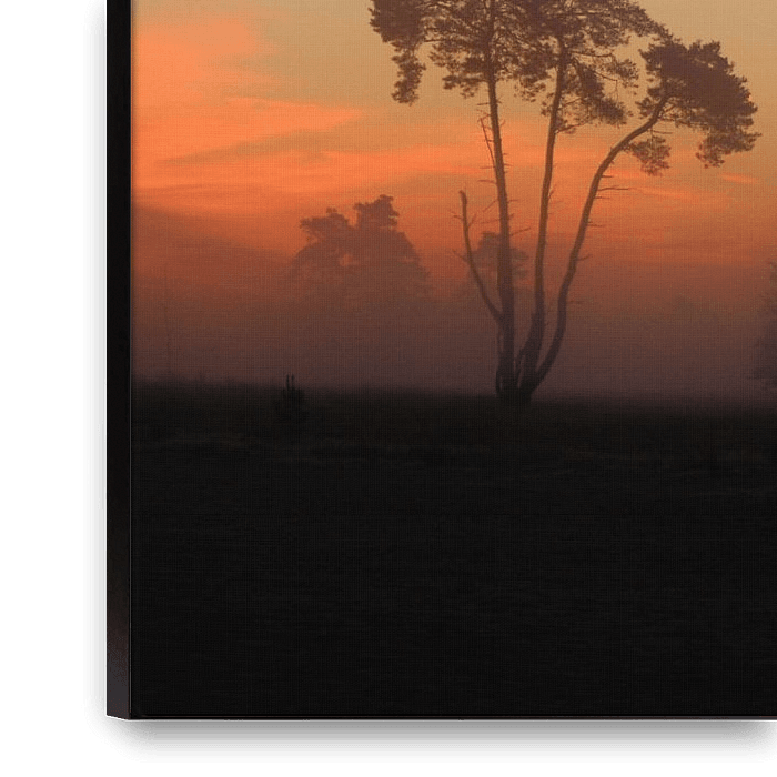 Buy this landscape artwork Sunrise in the Brabant dunes by Yvette de Vries on canvas, ArtFrame, poster and wallpaper, printed on demand in high quality.