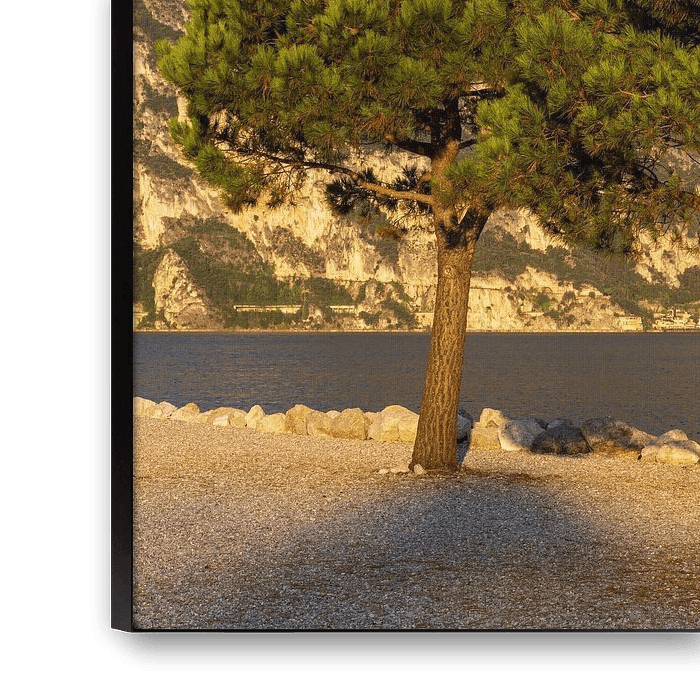 Buy the photo Sunrise on Lake Garda in Torbole on the beach by Daniel Pahmeier on canvas, ArtFrame, poster and wallpaper, printed on demand in high quality.