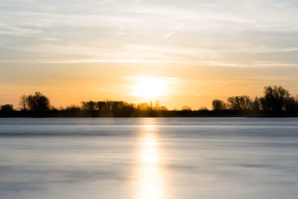 Very nice sunrise photographed with long shutter speeds. Nice smooth water and beautiful reflection of the sun over the water. The beginning of a beautiful day.