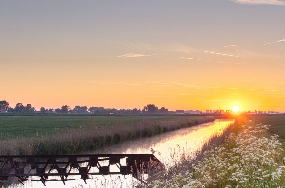 Sunrise over the fields , with an old bridge from WW I , at the iron in Newport.