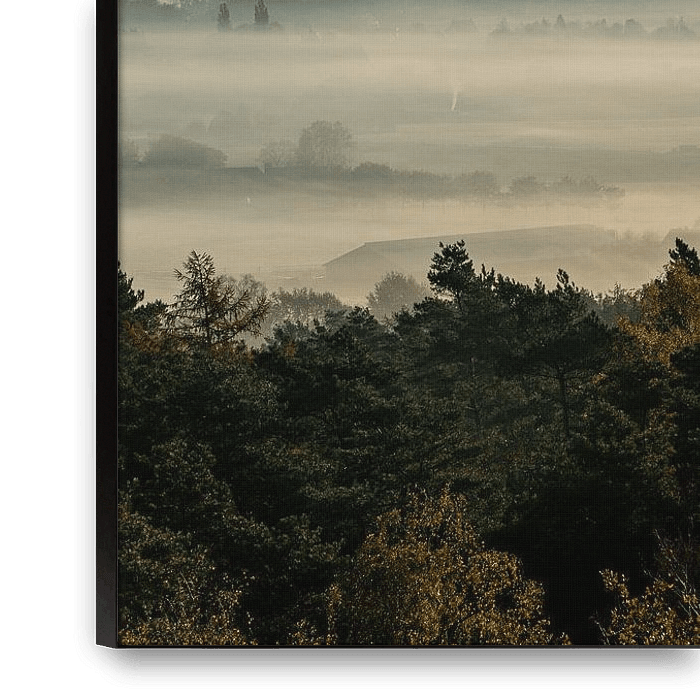 Buy the photo Sunrise view on an foggy morning in Montferland by Jeroen Kleiberg on canvas, ArtFrame, poster and wallpaper, printed on demand in high quality.