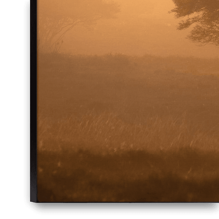 Warm and foggy sunrise on the Zuiderheide, Laren.