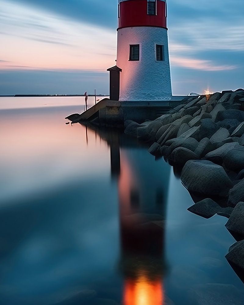 Buy this landscape artwork Sunset Lighthouse by fernlichtsicht on canvas, ArtFrame, poster and wallpaper, printed on demand in high quality.