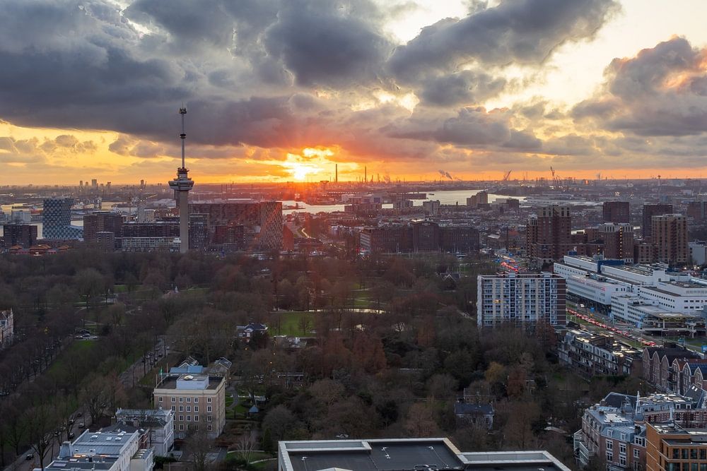 Sunset in Rotterdam is always a treat. But from this unique location completely. The photo was taken from the 30th floor of the Salmon Harbour Tower, giving a beautiful view from the Euromast to Erasmus MC.