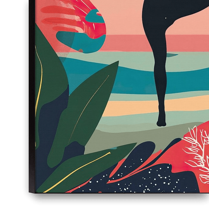 "Sunset Yoga" is an inspiring artwork that captures the silhouette of a yoga pose against the backdrop of a tropical sunset. Surrounded by lush leaves and the warm glow of the setting sun, this scene symbolises inner peace and balance. It is an invitation to escape the hectic pace of everyday life and enjoy a moment of peace. This piece…