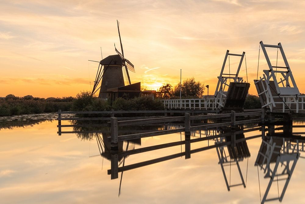 Buy the photo Sunset at Kinderdijk by Davey Bogaard on canvas, ArtFrame, poster and wallpaper, printed on demand in high quality.
