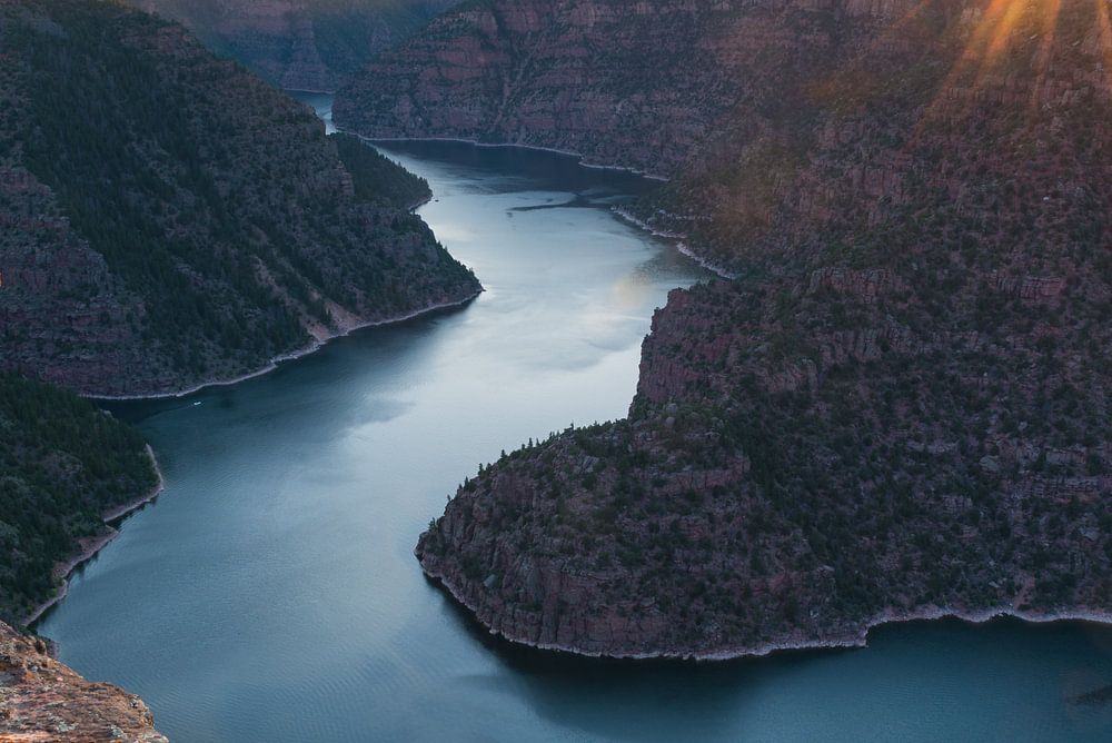 Sunset on the Red River in the Flaming Gorge National Recreation Area, Utah, USA