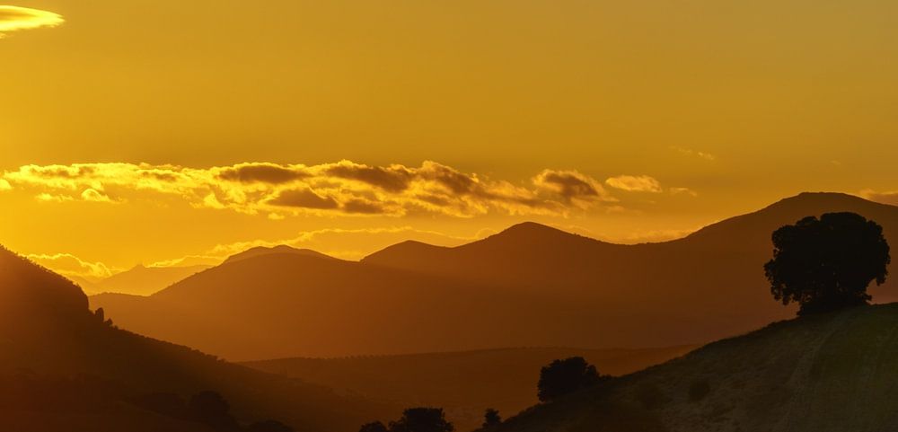 Buy this landscape artwork Sunset at the hills by Steven Driesen on canvas, ArtFrame, poster and wallpaper, printed on demand in high quality.